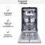 Узкие посудомоечные машины отличает ширина от 44,5 до 45 см при стандартных высоте и глубине и, соответственно, меньшая вместимость, не превышающая 10 комплектов посуды. Обычно это приборы встраиваемого типа, которые легко устанавливаются в узкую мебельную тумбу. Компактные устройства значительно меньше полноразмерных по высоте, а по своей ширине практически от них не отличаются — она составляет от 55 до 60 см. Вместимость подобных небольших машин встраиваемого и отдельно стоящего типа — 4-6 комплектов посуды.
