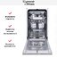 Компактные габариты 81.5×44.8×55 см и требуемая ниша 82×45×58 см делают прибор идеальным выбором для небольших кухонь или для дополнительной зоны в столовой. Узкая конструкция экономит место, при этом внутренняя организация корзин продумана для максимальной гибкости. Корзина для столовых приборов и полочка для чашек упрощают укладку мелких предметов, а автоматическое открытие дверцы в конце цикла способствует равномерной сушке.