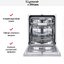 Внутри устройство вмещает до 14 комплектов посуды, что подходит для семьи среднего размера или для тех, кто часто принимает гостей. Наличие шести стандартных программ плюс специализированная «Стекло 90 мин» и интенсивная мойка позволяет гибко подобрать режим для хрупкой посуды, ежедневно используемых тарелок и сильно загрязнённых кастрюль. Режим «половинной загрузки» экономит воду и электроэнергию при небольшой загрузке, а быстрая программа ускоряет цикл, когда время ограничено.