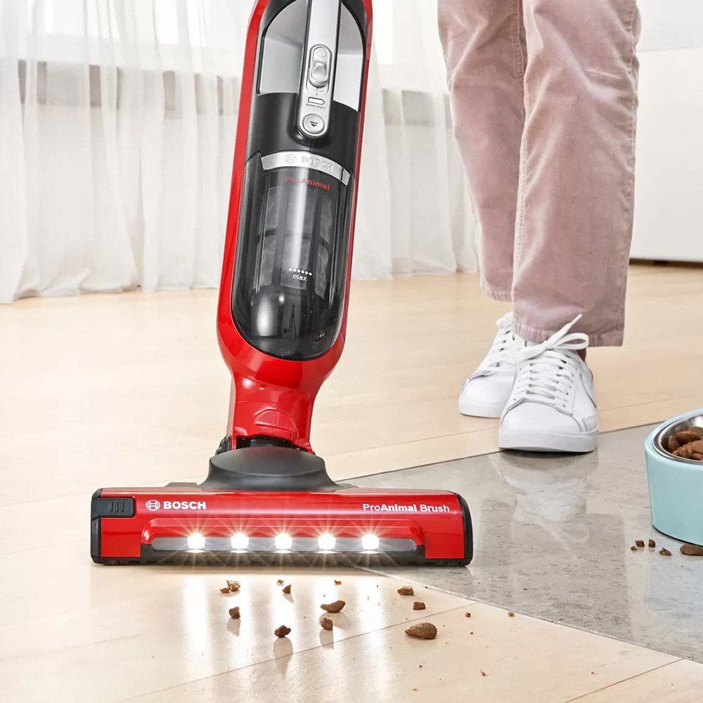 Вертикальный пылесос Bosch BBH3ZOO28 отличается высокой ручкой с насадкой, благодаря которой не нужно наклоняться во время уборки, а также компактным корпусом. Данная модель рассчитана только на сухую уборку, которой достаточно для большинства пользователей. Мощный поток воздуха позволяет быстро всасывать как мелкие, так и крупные частицы, волосы и шерсть. Основной цвет прибора — красный. В качестве пылесборника производитель установил стандартный контейнер. Пользоваться им легко и удобно: чтобы очистить, просто достаньте его и высыпьте все в мусорное ведро, а затем протрите или вымойте емкость изнутри. Объем заполнения пылесборника — 0.4 л.