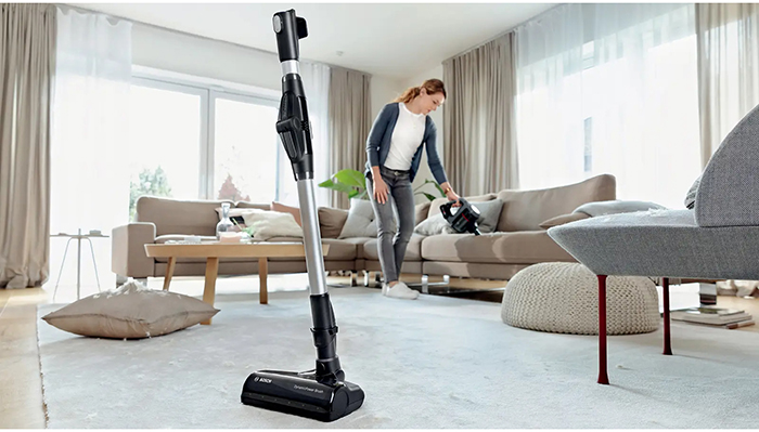 Вертикальный пылесос Bosch BBS712A отличается высокой ручкой с насадкой, благодаря которой не нужно наклоняться во время уборки, а также компактным корпусом. Данная модель рассчитана только на сухую уборку, которой достаточно для большинства пользователей. Мощный поток воздуха позволяет быстро всасывать как мелкие, так и крупные частицы, волосы и шерсть. Основной цвет прибора — графит. В качестве пылесборника производитель установил стандартный контейнер. Пользоваться им легко и удобно: чтобы очистить, просто достаньте его и высыпьте все в мусорное ведро, а затем протрите или вымойте емкость изнутри. Объем заполнения пылесборника — 0.3 л.
