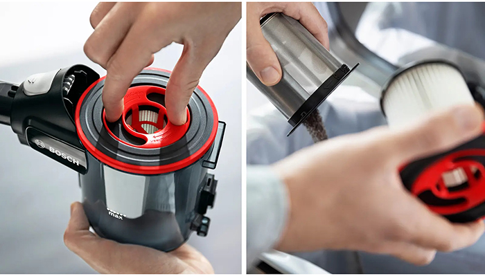 Циклонный фильтр — это усовершенствованный контейнер. Имеет форму обрезанного конуса — благодаря такому устройству воздух двигается циклически, заставляя мусор оседать внизу емкости за счет центробежной силы. Уже очищенный, воздушный поток выходит из пылесоса обратно. Обычно такая форма пылесборника соседствует с несколькими фильтрами, в том числе HEPA.