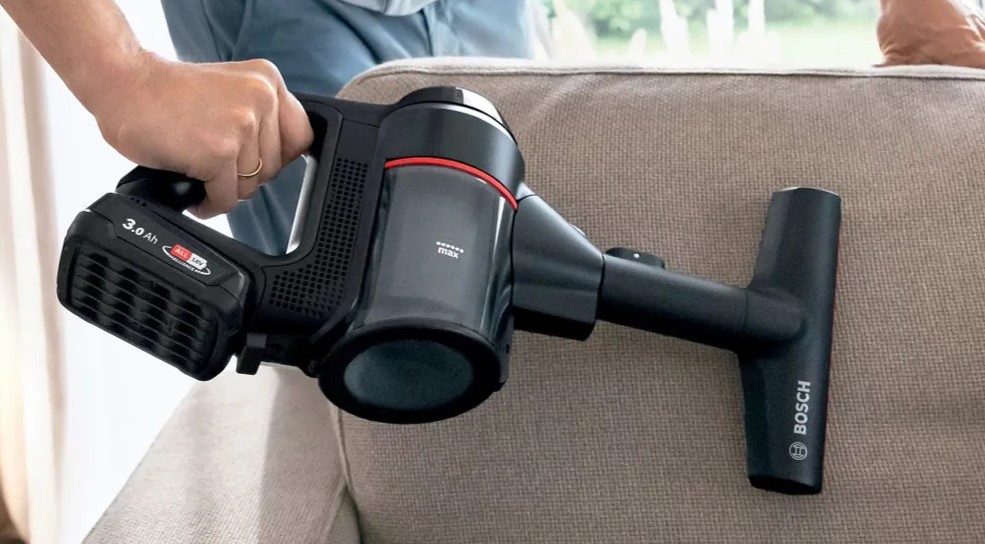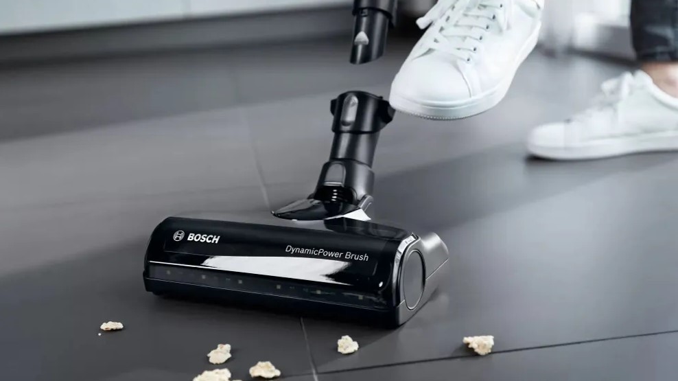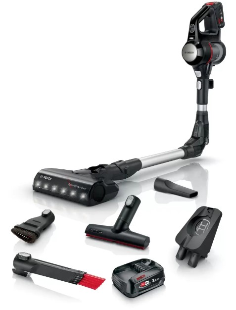 Вертикальный пылесос Bosch BCS712XXL заключён в стильный чёрный корпус и привлекает внимание своим современным технологичным видом. Компактные габариты 131.5×25.2×20.4 см делают устройство удобным для хранения. Вес всего 2.9 кг обеспечивает комфортную переноску и упрощает уборку на лестнице или в автомобиле. Корпус изготовлен из прочного легкого пластика с матовой отделкой, что снижает видимость отпечатков и упрощает уход за внешней поверхностью.