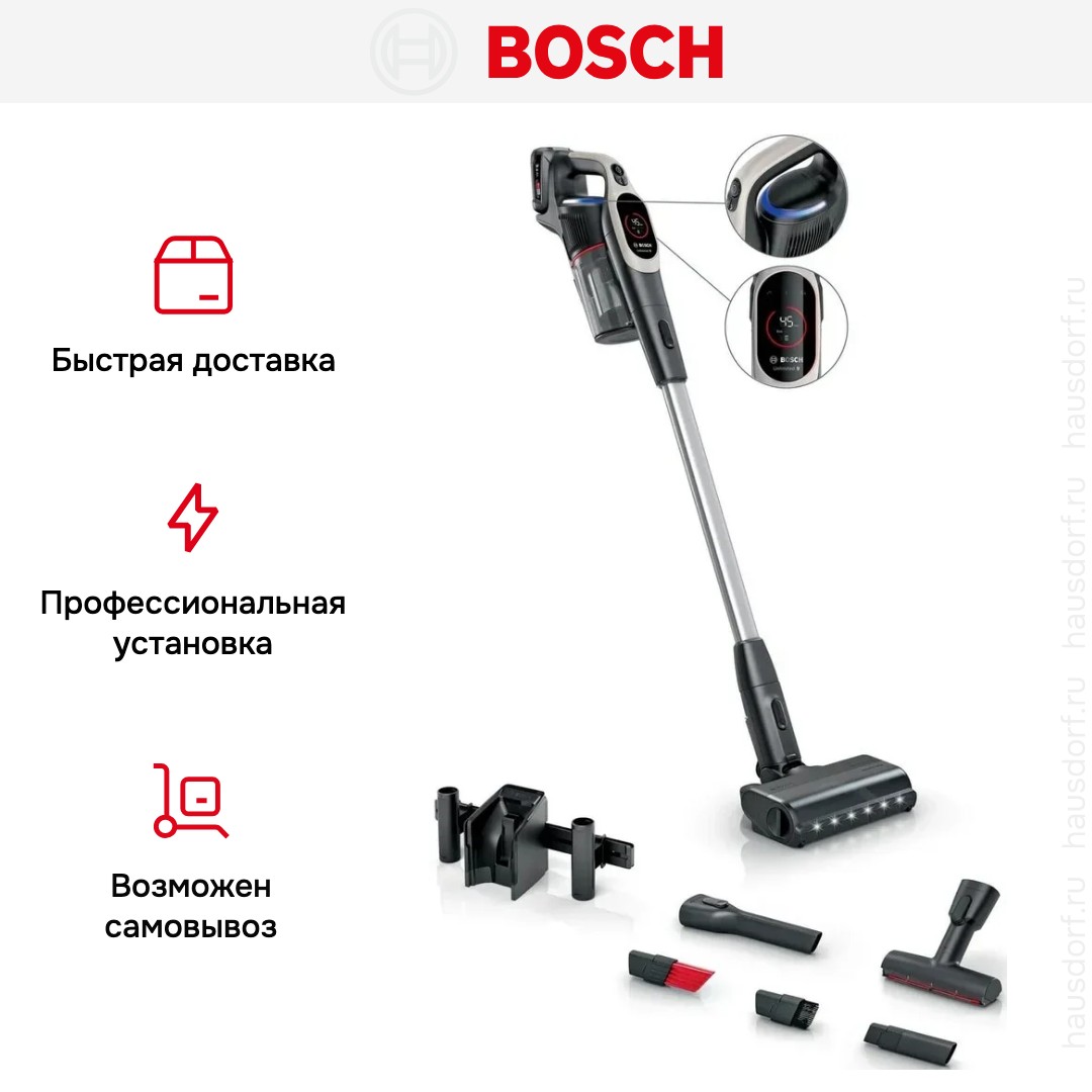 Вертикальный пылесос Bosch BCS931GAC представляет собой лёгкий и функциональный прибор в чёрном корпусе. Его габариты 130×25×21.6 см делают устройство удобным для хранения в узких кладовках и шкафах. Невысокий вес всего 3.3 кг облегчает переноску и уборку.