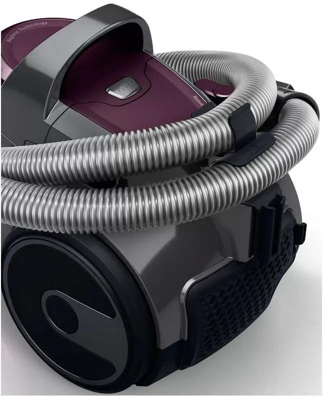 Пылесос Bosch BGC05AAA1 имеет стандартную конфигурацию — корпус на колесах, крепящийся к нему шланг с трубками-удлинителями и насадками. Данная модель рассчитана только на сухую уборку, которой достаточно для большинства пользователей. Мощный поток воздуха позволяет быстро всасывать как мелкие, так и крупные частицы, волосы и шерсть. Основной цвет прибора — фиолетовый. В качестве пылесборника производитель установил стандартный контейнер. Пользоваться им легко и удобно: чтобы очистить, просто достаньте его и высыпьте все в мусорное ведро, а затем протрите или вымойте емкость изнутри. Объем заполнения пылесборника — 1.4 л.