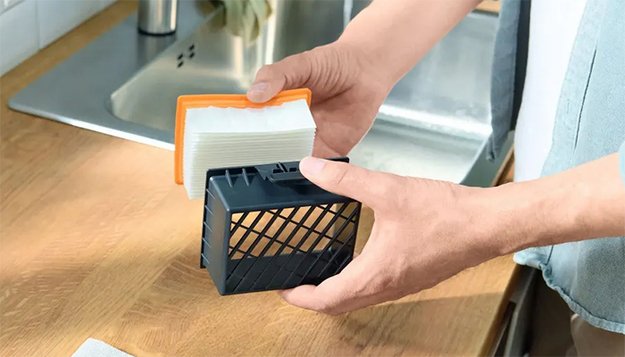 Индикатор заполнения сообщает о необходимости замены или очистки пылесборника. Вам больше не придется самостоятельно проверять степень загрязненности и переживать о некачественной работе пылесоса.