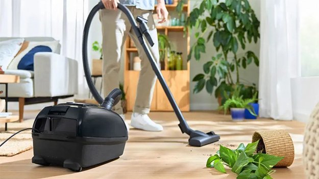 Прибор питается от электросети, поэтому проблем с внезапным отключением от недостатка заряда не возникнет. Предусмотрена удобная система парковки — с которой пылесос занимает меньше места.