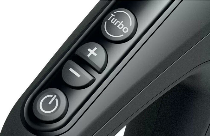 Удобная система управления пылесосом располагается прямо на ручке со шлангом или трубкой всасывания — кнопки регулирования и индикатор мощности, а также клавиши включения/выключения.