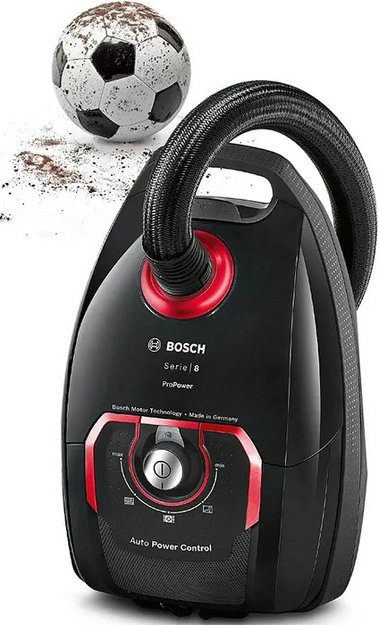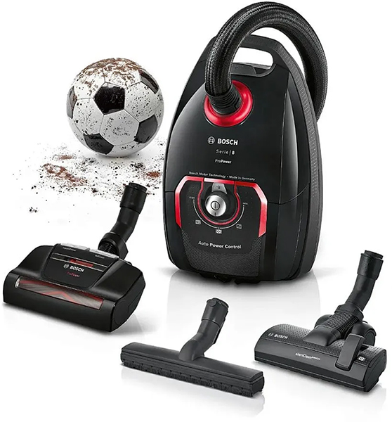 Пылесос Bosch BGL8POW2 имеет стандартную конфигурацию — корпус на колесах, крепящийся к нему шланг с трубками-удлинителями и насадками. Данная модель рассчитана только на сухую уборку, которой достаточно для большинства пользователей. Мощный поток воздуха позволяет быстро всасывать как мелкие, так и крупные частицы, волосы и шерсть. Пылесборник-мешок — привычный вариант, с которым легко работать, можно не беспокоиться о чрезмерном расходе электроэнергии. Он тщательно запирает внутри крупную пыль, но может незначительно пропускает очень мелкие частицы. Объем заполнения пылесборника — 5 л.