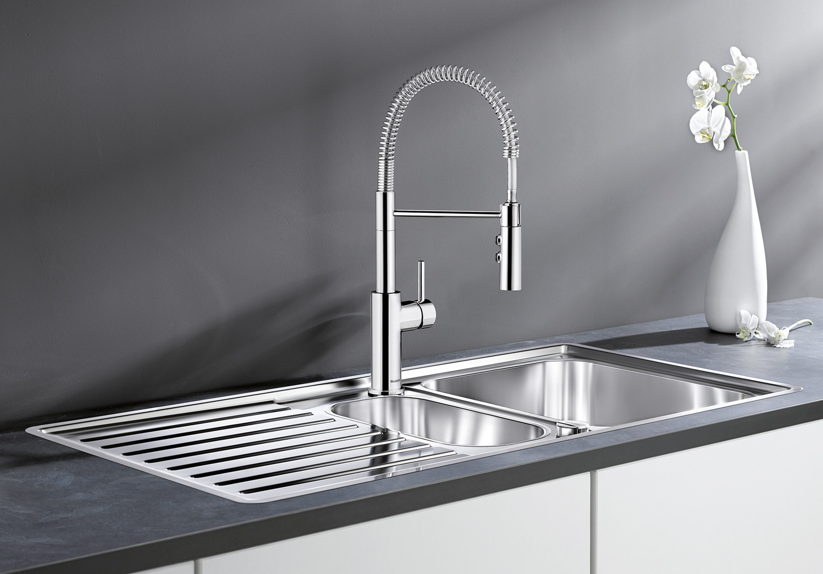 Смеситель Blanco Catris S сочетает элегантный хромированный корпус с продуманной практичностью и строгими формами. Он выполнен из латуни с глянцевым покрытием, что придаёт кухонному пространству аккуратный и современный вид. Хромовый финиш не только эстетичен, но и удобен в уходе, он устойчив к потёртостям и сохраняет блеск при правильном обслуживании. Латунная основа обеспечивает коррозионную стойкость и долговечность в условиях частого использования.