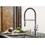 Практические параметры продуманы для комфорта: высота излива 15.9 см и его длина 18.7 см дают оптимальный зазор для мытья посуды и наливания высоких кастрюль. Выдвижной излив расширяет рабочую зону, позволяя направлять струю в разные точки мойки и ополаскивать овощи удобнее. Угол поворота 360° делает смеситель универсальным для двойных раковин и позволяет легко перемещать излив в нужную сторону.