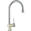 Специальная насадка позволяет выдвинуть излив как маленький шланг и направить струю в слишком высокую кастрюлю, которая не помещается под стационарным краном, на овощи в раковине, на загрязнения в неудобных уголках мойки, которые нужно удалить и т.д. Благодаря особой конструкции вы можете также направить воду из раковины в ванну или из одной чаши мойки в другую одним поворотом крана в нужную сторону. Дополнительная деталь, которая повышает комфорт использования, — аэратор. Он делает поток воды мягче, насыщая его кислородом, таким образом дополнительно уменьшая ее расход: объем струи увеличивается за счет воздуха, а не за счет повышения напора из водопровода.