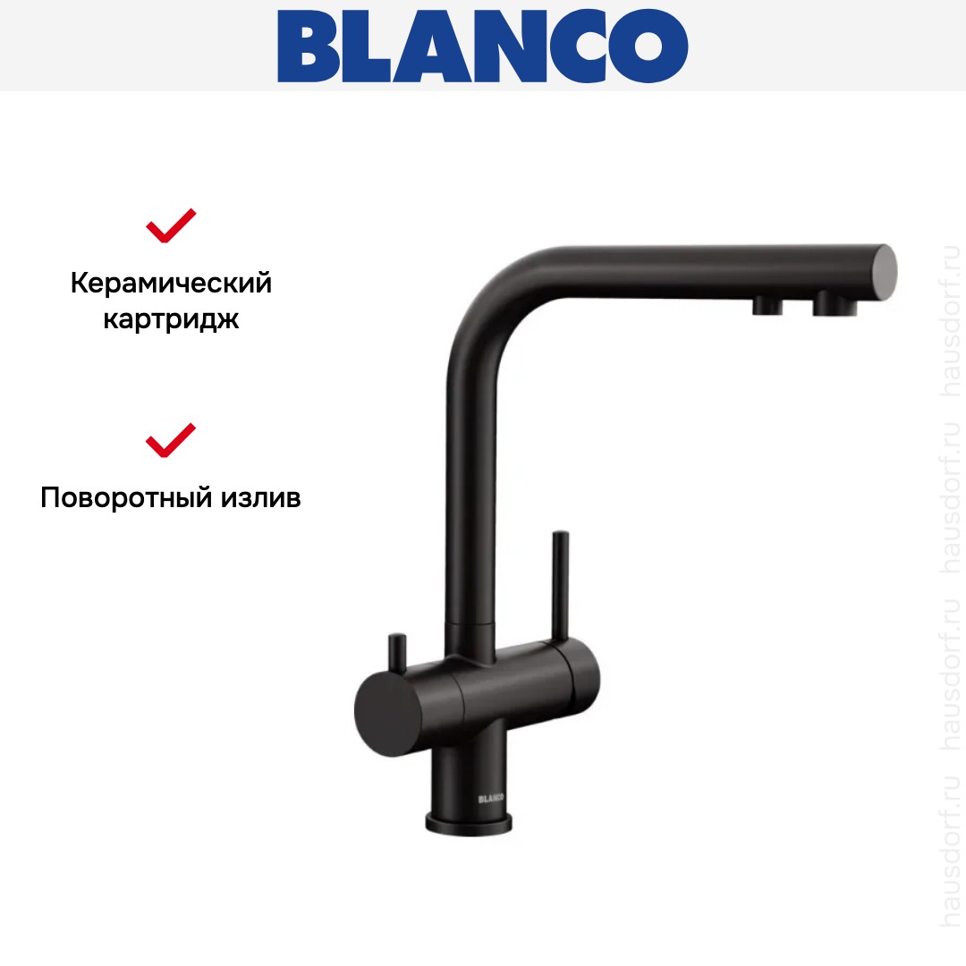 Смеситель Бланко — отличный выбор для кухни и ванной комнаты. Классический вариант с двумя вентилями подойдет большинству пользователей: нужно настраивать напор и температуру воды из «горячей» и «холодной трубы» отдельно, поток смешивается внутри крана и на выходе имеет оптимальную температуру. Благодаря запорному механизму в виде керамических пластин такой смеситель прослужит много лет, так как в нем отсутствуют быстро стирающиеся прокладки; также на клапане практически не образуется накипь. При повороте ручки диски внутри смещаются относительно друг друга — открывают или блокируют воду.