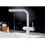 Высота излива 26,7 см и длина 20,5 см обеспечивают достаточный запас пространства для наполнения ёмкостей и удобной мойки крупной утвари. Общая высота около 300 мм создаёт удобную рабочую геометрию и сокращает необходимость наклоняться. Поворот излива на 360 градусов делает эту модель универсальной для моек с двумя чашами, позволяя свободно направлять струю в любую сторону.