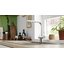 Функциональность на рабочем месте продумана до мелочей. Высота излива 27,2 см оставляет достаточно места для наполнения высоких кастрюль и удобной мойки крупных предметов. Длина излива 21,6 см обеспечивает покрытие всей чаши без необходимости переставлять посуду. Выдвижной излив добавляет мобильности: короткий шланг в корпусе помогает ополаскивать овощи и мыть углы раковины. Угол поворота 180° делает удобной эксплуатацию на двойных мойках и не мешает закрытию шкафов.