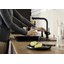 Специальная насадка позволяет выдвинуть излив как маленький шланг и направить струю в слишком высокую кастрюлю, которая не помещается под стационарным краном, на овощи в раковине, на загрязнения в неудобных уголках мойки, которые нужно удалить и т.д. Благодаря особой конструкции вы можете также направить воду из раковины в ванну или из одной чаши мойки в другую одним поворотом крана в нужную сторону. Дополнительная деталь, которая повышает комфорт использования, — аэратор. Он делает поток воды мягче, насыщая его кислородом, таким образом дополнительно уменьшая ее расход: объем струи увеличивается за счет воздуха, а не за счет повышения напора из водопровода. К этой модели можно подключить фильтр для питьевой воды.