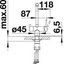 Длиной излива называется расстояние по горизонтали от основания смесителя до точки в раковине, куда падает струя воды. Учитывать длину при выборе смесителя и мойки так же важно, как и высоту. Основной фактор выбора: струя должна попадать в середину раковины, а не на одну из боковых поверхностей, чтобы не забрызгать столешницу и рядом стоящую бытовую технику. В идеале она должна попадать прямо на сливное отверстие, в крайнем случае место падения должно располагаться между сливным отверстием и передней стенкой. При этом нужно учитывать угол, под которым падает струя, а также расстояние от основания смесителя до ближайшей стенки раковины. Проводить измерения следует при максимальном напоре воды.