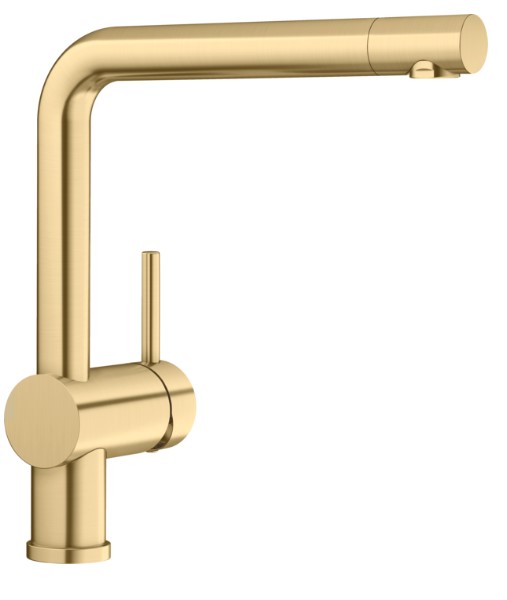 Смеситель Blanco Linus — элегантный однорычажный кухонный прибор в благородном золотом исполнении, который подчеркнёт стиль современной кухни. Его высокая излива обеспечивает удобство при мытье крупных предметов и добавляет визуальной лёгкости интерьеру. Лаконичные линии корпуса сочетаются с теплым металлическим оттенком, создавая впечатление премиального решения.