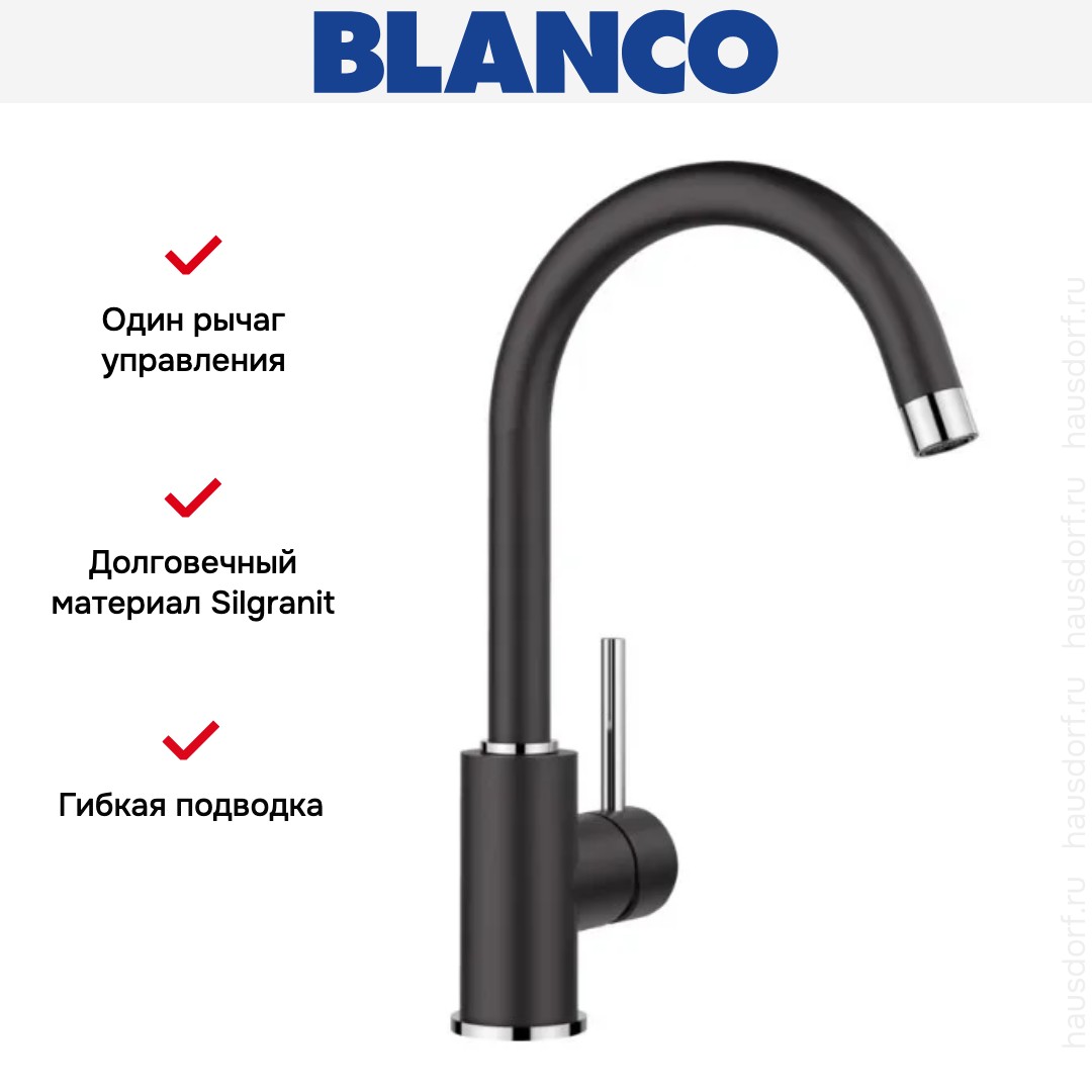 Смеситель Blanco MIDA 526145 Silgranit черный в Тюмени