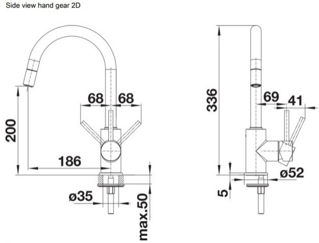 Высота излива — один из важнейших параметров, которые необходимо учитывать при выборе кухонного смесителя. Высотой называется расстояние от поверхности, на которой установлен смеситель, до его носика, то есть это, по сути, длина струи воды. Подбирать модель по высоте следует так, чтобы в раковину без труда помещались любые емкости, которыми вы пользуетесь, включая большие кастрюли и высокие вазы, а вода при ударе о дно раковины не разбрызгивалась во все стороны. Чем больше высота излива, тем глубже должна быть раковина.