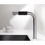 Смеситель SAGA отличает минимализм форм и совершенство линий. Лаконичный дизайн и металлическая поверхность модели сочетают изысканность и стиль. Система управления интегрирована в цилиндрический изогнутый корпус. Регулировка мощности осуществляется при помощи черной манжеты из прорезиненного материала — поступательные движения регулируют напор воды, вращательные — температуру. Модель гармонирует с интерьерами в стиле минимализм.