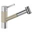 Внутри крана помещается шланг, который можно растянуть, чтобы достать струей воды до второй чаши мойки или тщательно сполоснуть посуду.