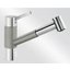 Внутри крана помещается шланг, который можно растянуть, чтобы достать струей воды до второй чаши мойки или тщательно сполоснуть посуду.