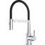 Выдвижной излив в кухонном смесителе — это гибкая трубка из резины в металлической оплетке, расположенная внутри основного излива. Для того, чтобы воспользоваться гибким изливом — например, наполнить высокую посуду, — достаточно включить воду и потянуть за головку, находящуюся на конце трубки.