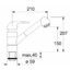 Длиной излива называется расстояние по горизонтали от основания смесителя до точки в раковине, куда падает струя воды. Учитывать длину при выборе смесителя и мойки так же важно, как и высоту. Основной фактор выбора: струя должна попадать в середину раковины, а не на одну из боковых поверхностей, чтобы не забрызгать столешницу и рядом стоящую бытовую технику. В идеале она должна попадать прямо на сливное отверстие, в крайнем случае место падения должно располагаться между сливным отверстием и передней стенкой. При этом нужно учитывать угол, под которым падает струя, а также расстояние от основания смесителя до ближайшей стенки раковины. Проводить измерения следует при максимальном напоре воды.