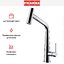 Внутри крана помещается шланг, который можно растянуть, чтобы достать струей воды до второй чаши мойки или тщательно сполоснуть посуду.