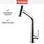 Выдвижной излив в кухонном смесителе — это гибкая трубка из резины в металлической оплетке, расположенная внутри основного излива. Для того, чтобы воспользоваться гибким изливом — например, наполнить высокую посуду, — достаточно включить воду и потянуть за головку, находящуюся на конце трубки.