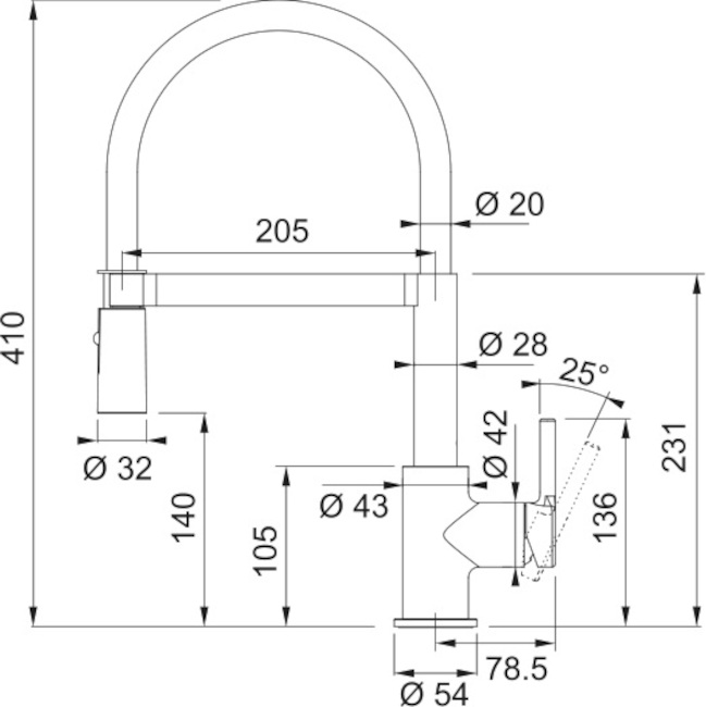 Высота излива — один из важнейших параметров, которые необходимо учитывать при выборе кухонного смесителя. Высотой называется расстояние от поверхности, на которой установлен смеситель, до его носика, то есть это, по сути, длина струи воды. Подбирать модель по высоте следует так, чтобы в раковину без труда помещались любые емкости, которыми вы пользуетесь, включая большие кастрюли и высокие вазы, а вода при ударе о дно раковины не разбрызгивалась во все стороны. Чем больше высота излива, тем глубже должна быть раковина.