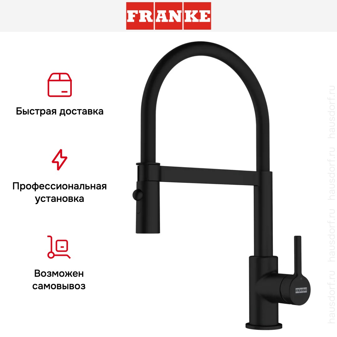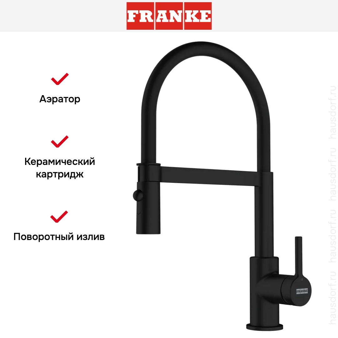 Смеситель Franke Lina Semi-pro с выдвижным шлангом черный матовый в Тюмени
