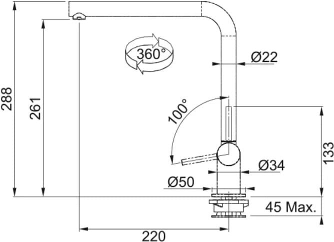 Высота излива — один из важнейших параметров, которые необходимо учитывать при выборе кухонного смесителя. Высотой называется расстояние от поверхности, на которой установлен смеситель, до его носика, то есть это, по сути, длина струи воды. Подбирать модель по высоте следует так, чтобы в раковину без труда помещались любые емкости, которыми вы пользуетесь, включая большие кастрюли и высокие вазы, а вода при ударе о дно раковины не разбрызгивалась во все стороны. Чем больше высота излива, тем глубже должна быть раковина.