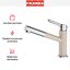 Высота излива — один из важнейших параметров, которые необходимо учитывать при выборе кухонного смесителя. Высотой называется расстояние от поверхности, на которой установлен смеситель, до его носика, то есть это, по сути, длина струи воды. Подбирать модель по высоте следует так, чтобы в раковину без труда помещались любые емкости, которыми вы пользуетесь, включая большие кастрюли и высокие вазы, а вода при ударе о дно раковины не разбрызгивалась во все стороны. Чем больше высота излива, тем глубже должна быть раковина.