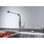 Внутри крана помещается шланг, который можно растянуть, чтобы достать струей воды до второй чаши мойки или тщательно сполоснуть посуду.
