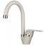 По высоте все смесители можно разделить на три группы: низкие, средние и высокие. Низкие обычно имеют один вентиль, а средние и высокие — по два. Высота низких смесителей составляет около 10-12 см, их выбирают для небольшой мойки глубиной около 120-140 мм и чаще устанавливают в ванной, чем в кухне. Кухонные модели могут дополняться выдвижными шлангами и поворотным изливом. Высота средних смесителей варьируется в пределах от 15 до 25 см: за стандартный принят размер 22 см. Они могут крепиться к мойке или к стене и подойдут для раковин глубиной около 170 мм. Для больших раковин глубиной более 20 см подойдут высокие изливы — от 25 до 50 см: они наиболее удобны, но требуют больше места.