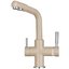 Смеситель Graude ATD 20.0 роскошного имбирного цвета подойдет для любой кухни. Легко устанавливается благодаря гибкой подводке и горизонтальному типу крепления. Два вентиля позволяют комфортно менять температуру и напор воды за счет ее смешения из разных труб. В комплект входит уплотнитель, кран для подачи питьевой воды и аэратор.