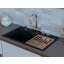 Внутри крана помещается шланг, который можно растянуть, чтобы достать струей воды до второй чаши мойки или тщательно сполоснуть посуду.