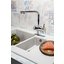 Благодаря особой конструкции вы можете также направить воду из раковины в ванну или из одной чаши мойки в другую одним поворотом крана в нужную сторону. Дополнительная деталь, которая повышает комфорт использования, — аэратор. Он делает поток воды мягче, насыщая его кислородом, таким образом дополнительно уменьшая ее расход: объем струи увеличивается за счет воздуха, а не за счет повышения напора из водопровода. К этой модели можно подключить фильтр для питьевой воды.