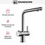 Для подачи чистой воды смесители могут оснащаться единственным рычагом, при помощи которого производится переключение на фильтр. Этот же рычаг регулирует напор и температуру водопроводной воды. Чаще на изливе имеются два рычага, один из которых отвечает только за включение фильтрованной воды.