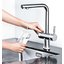 Рычаг для включения фильтрованной воды применяется в современных комбинированных смесителях, где из одного и того же излива подается и водопроводная, и питьевая вода. Такие смесители типа «два в одном» отличаются от обычных тем, что имеют не два подключения, а три, где третье соединяет смеситель с фильтром. Очищенная вода подается по изолированной трубке, проходящей внутри излива. Для удаления накипи, солей металлов, микроорганизмов и прочих вредных примесей могут применяться различные типы фильтров. Проточные фильтры устанавливаются под мойкой и включают несколько картриджей, которые необходимо менять по мере использования. С их помощью можно избавиться от таких примесей, как железо, хлор и многие другие. Устройства с системой обратного осмоса оснащаются диффузором, включающим картриджи для предварительной очистки и осмотическую мембрану, задерживающую практически все вредные примеси.