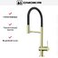 Выдвижной излив в кухонном смесителе — это гибкая трубка из резины в металлической оплетке, расположенная внутри основного излива. Для того, чтобы воспользоваться гибким изливом — например, наполнить высокую посуду, — достаточно включить воду и потянуть за головку, находящуюся на конце трубки.