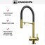 Высота излива — один из важнейших параметров, которые необходимо учитывать при выборе кухонного смесителя. Высотой называется расстояние от поверхности, на которой установлен смеситель, до его носика, то есть это, по сути, длина струи воды. Подбирать модель по высоте следует так, чтобы в раковину без труда помещались любые емкости, которыми вы пользуетесь, включая большие кастрюли и высокие вазы, а вода при ударе о дно раковины не разбрызгивалась во все стороны. Чем больше высота излива, тем глубже должна быть раковина.