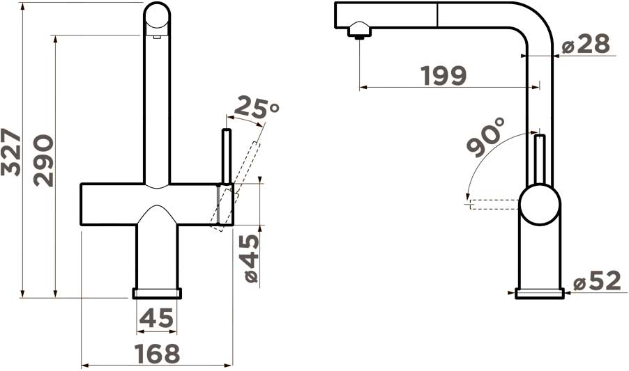 Специальная насадка позволяет выдвинуть излив как маленький шланг и направить струю в слишком высокую кастрюлю, которая не помещается под стационарным краном, на овощи в раковине, на загрязнения в неудобных уголках мойки, которые нужно удалить и т.д. Дополнительная деталь, которая повышает комфорт использования, — аэратор. Он делает поток воды мягче, насыщая его кислородом, таким образом дополнительно уменьшая ее расход: объем струи увеличивается за счет воздуха, а не за счет повышения напора из водопровода. К этой модели можно подключить фильтр для питьевой воды.