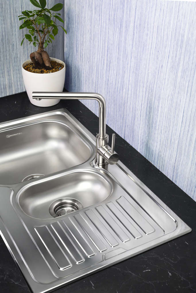 По высоте все смесители можно разделить на три группы: низкие, средние и высокие. Низкие обычно имеют один вентиль, а средние и высокие — по два. Высота низких смесителей составляет около 10-12 см, их выбирают для небольшой мойки глубиной около 120-140 мм и чаще устанавливают в ванной, чем в кухне. Кухонные модели могут дополняться выдвижными шлангами и поворотным изливом. Высота средних смесителей варьируется в пределах от 15 до 25 см: за стандартный принят размер 22 см. Они могут крепиться к мойке или к стене и подойдут для раковин глубиной около 170 мм. Для больших раковин глубиной более 20 см подойдут высокие изливы — от 25 до 50 см: они наиболее удобны, но требуют больше места.