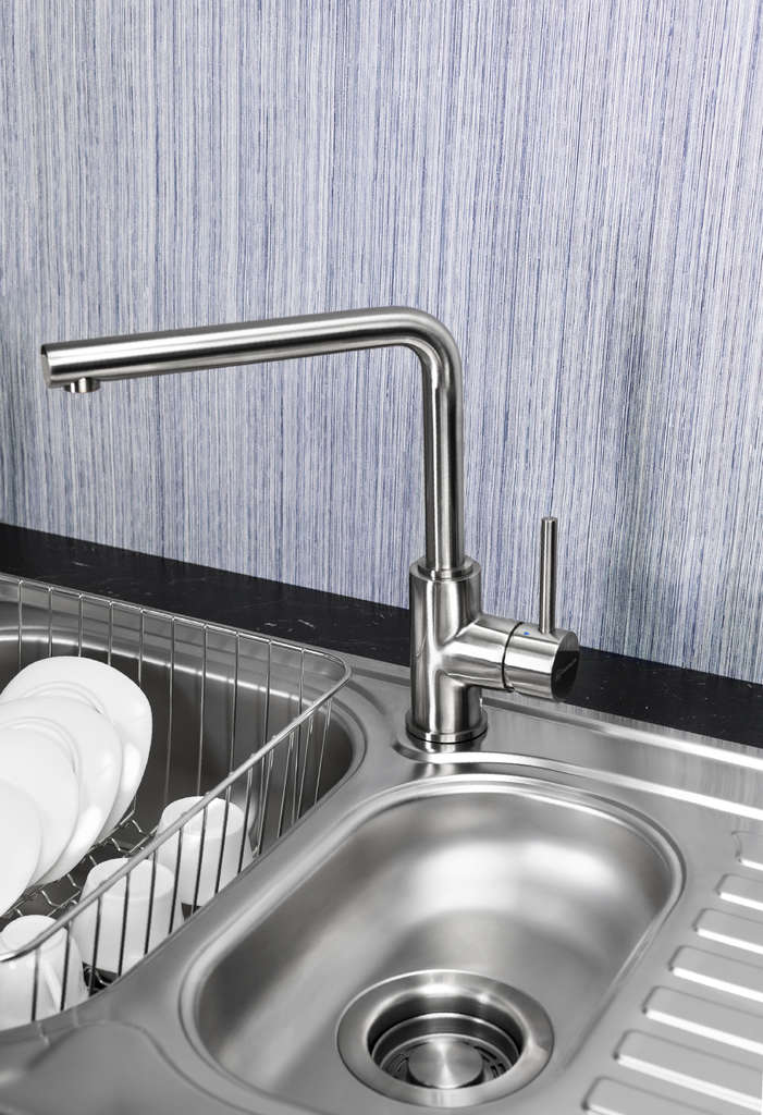Благодаря особой конструкции вы можете также направить воду из раковины в ванну или из одной чаши мойки в другую одним поворотом крана в нужную сторону. Дополнительная деталь, которая повышает комфорт использования, — аэратор. Он делает поток воды мягче, насыщая его кислородом, таким образом дополнительно уменьшая ее расход: объем струи увеличивается за счет воздуха, а не за счет повышения напора из водопровода.