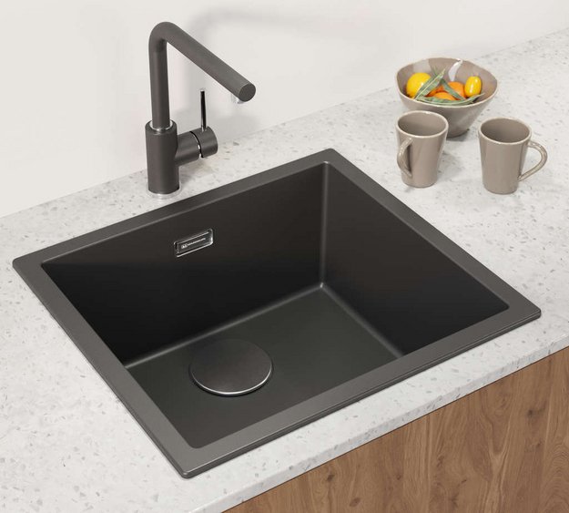 Длиной излива называется расстояние по горизонтали от основания смесителя до точки в раковине, куда падает струя воды. Учитывать длину при выборе смесителя и мойки так же важно, как и высоту. Основной фактор выбора: струя должна попадать в середину раковины, а не на одну из боковых поверхностей, чтобы не забрызгать столешницу и рядом стоящую бытовую технику. В идеале она должна попадать прямо на сливное отверстие, в крайнем случае место падения должно располагаться между сливным отверстием и передней стенкой. При этом нужно учитывать угол, под которым падает струя, а также расстояние от основания смесителя до ближайшей стенки раковины. Проводить измерения следует при максимальном напоре воды.