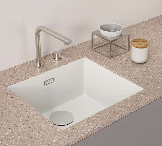 Длиной излива называется расстояние по горизонтали от основания смесителя до точки в раковине, куда падает струя воды. Учитывать длину при выборе смесителя и мойки так же важно, как и высоту. Основной фактор выбора: струя должна попадать в середину раковины, а не на одну из боковых поверхностей, чтобы не забрызгать столешницу и рядом стоящую бытовую технику. В идеале она должна попадать прямо на сливное отверстие, в крайнем случае место падения должно располагаться между сливным отверстием и передней стенкой. При этом нужно учитывать угол, под которым падает струя, а также расстояние от основания смесителя до ближайшей стенки раковины. Проводить измерения следует при максимальном напоре воды.