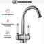 Смеситель с подключением к фильтру для воды — современная модель, которая облегчает быт. Вместо двух соединений с водопроводом у таких вариантов их три, а трубка, по которой идет отфильтрованная вода, находится внутри крана. Чуть дальше основного отверстия, через которое подается поток в раковину, расположено отверстие поменьше — для питьевой воды.